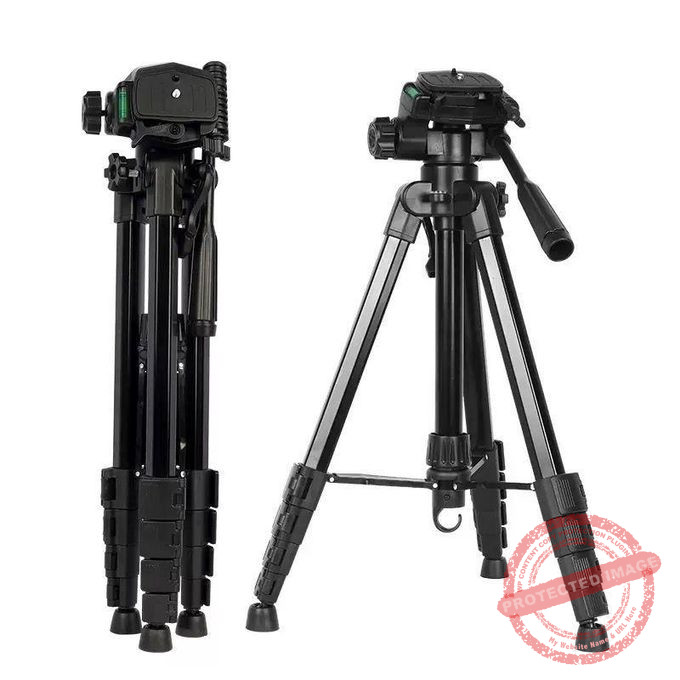 Comes with a phone holder, Bluetooth shutter, carry bag and handle. Very sturdy and strong tripod stand