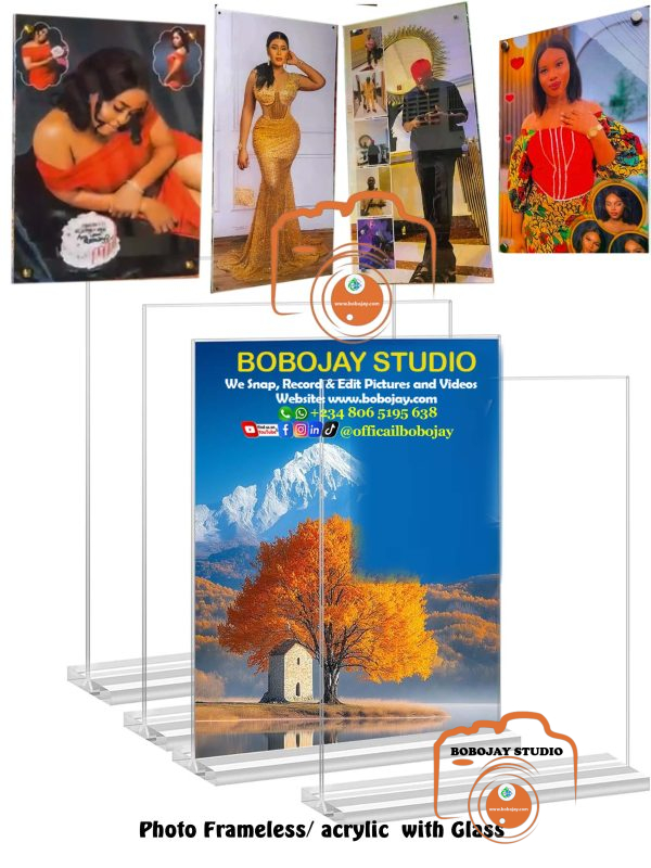 Bobojay Acrylic frame comes with glass, shape print and beautiful design that can beautify any walls of your apartment and it can be delivered to you within 7-14 days any where in Nigeria. Note: Please send your desired picture to us on WhatsApp as file after payment and confirm your design within 48 hours before we printing, frame and deliver to your location.